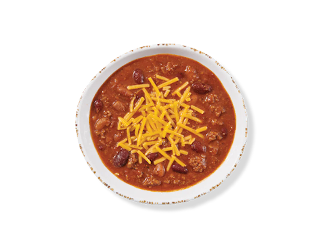 Ground beef and tomatoes slowly simmered with kidney beans, pinto beans, mushrooms, chili powder and a touch of sweet wine. Garnished with Cheddar. Make it Loaded with Cheddar, pickled jalapeños, sour cream and cilantro for $1.25