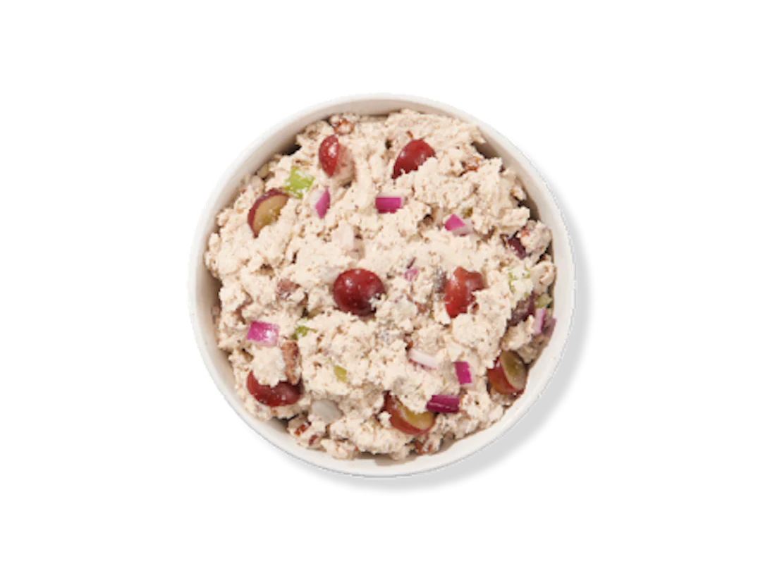 Chicken salad - made from scratch with tender all-white meat, sliced grapes, pecans, diced red onion and mayo. Choice of 8oz, 16oz, and 32oz options.