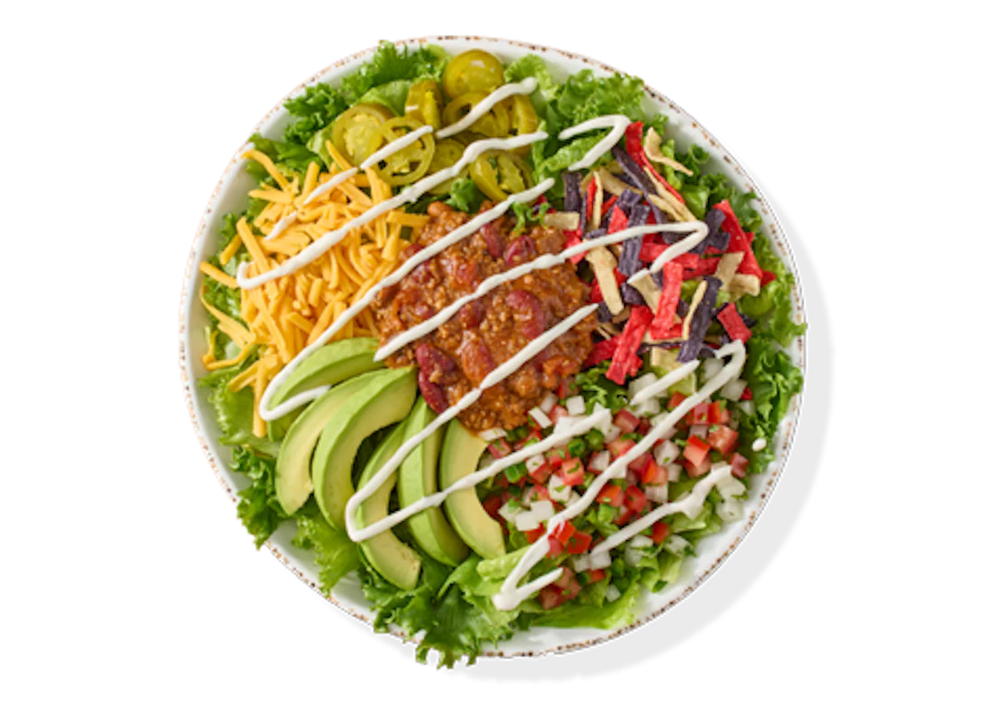Romaine blend topped with Newk's Beef Chili, cheddar, pickled jalapeños, Pico de Gallo, avocado, crispy tortilla strips and a sour cream drizzle.