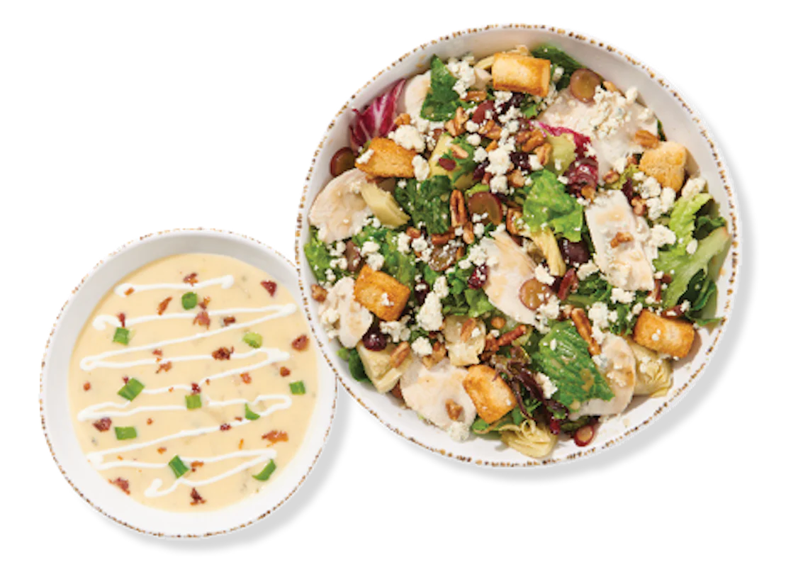 Choose any Full Salad to pair with a Cup of Soup, Bowl of Fruit, Bowl of Pasta Salad, Bowl of Potato Salad, Half Mac & Cheese or a Half Classic Salad. *Upcharge for Premium Salads.