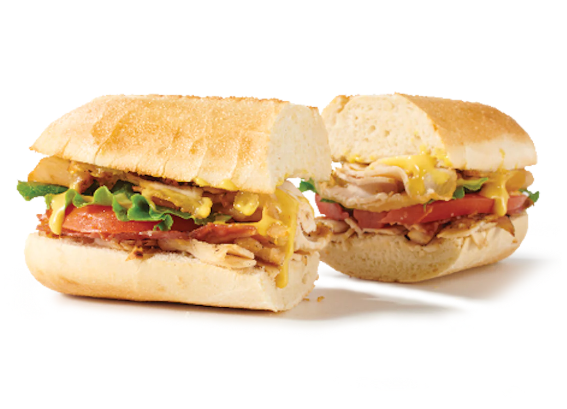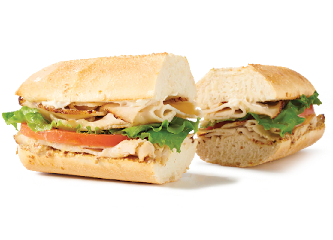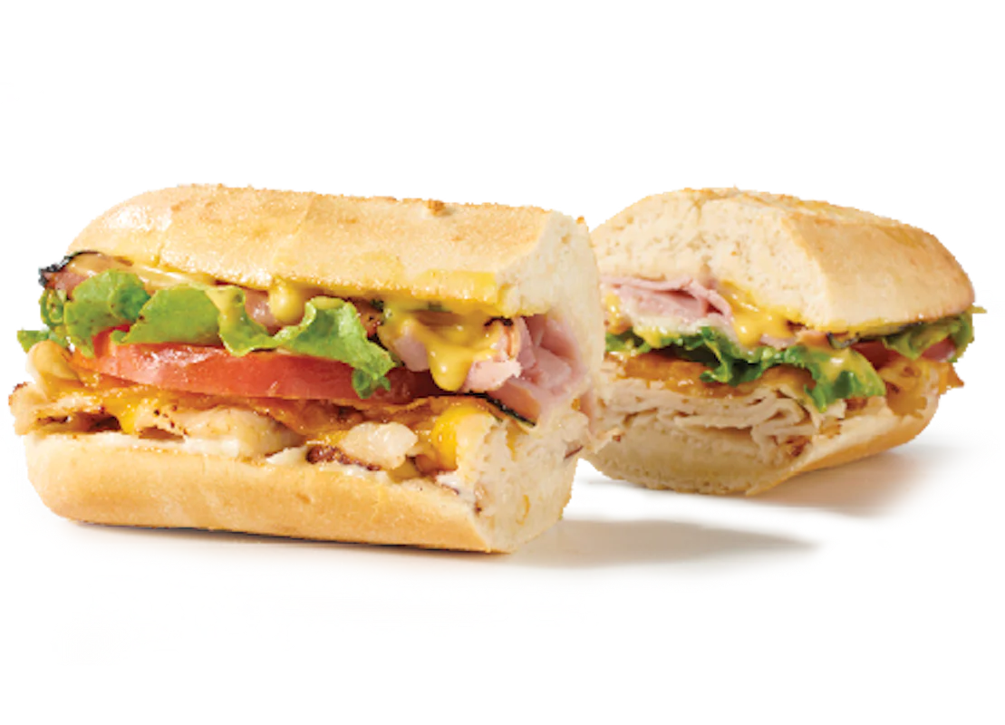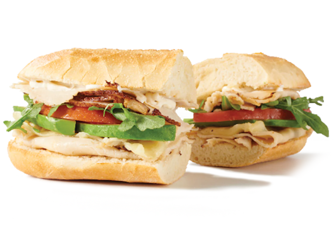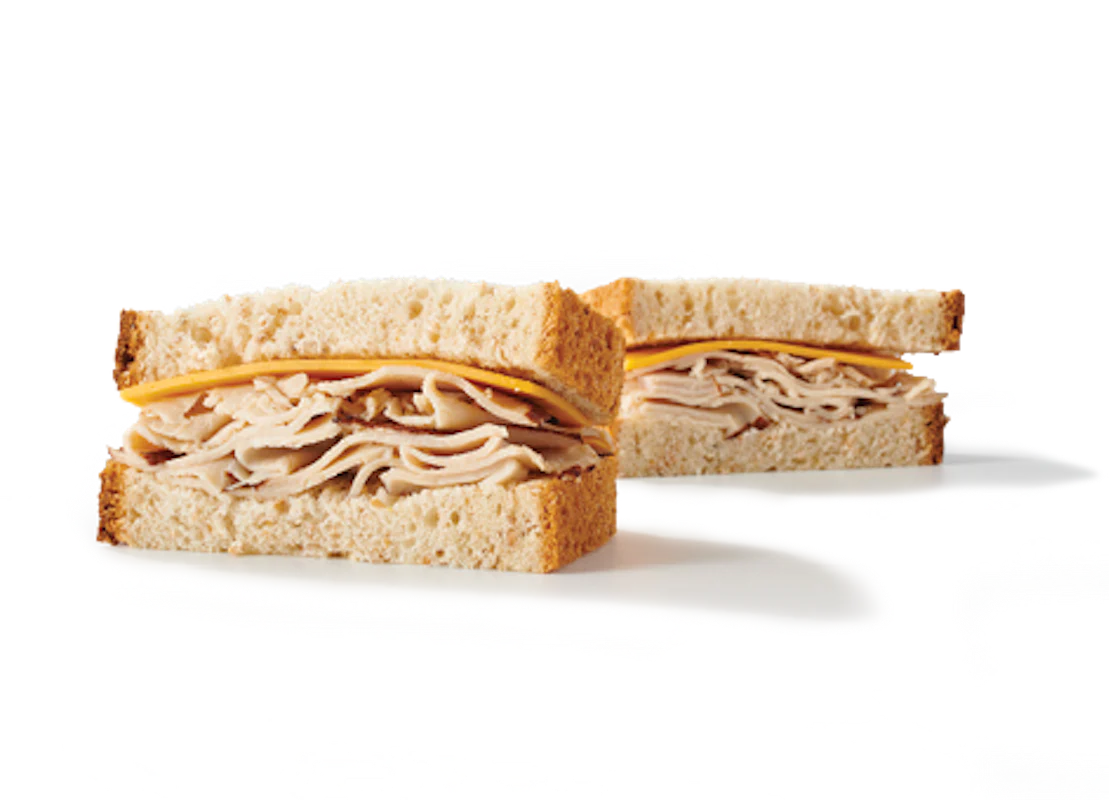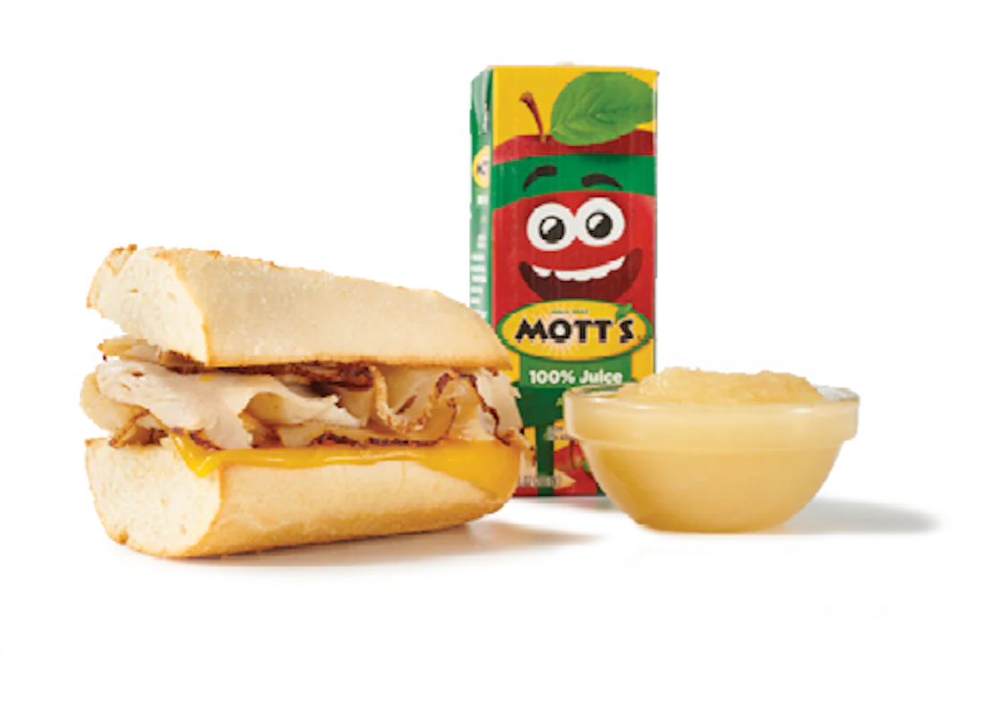 Oven-roasted turkey and aged cheddar cheese served warm on French Parisian bread with choice of fruit (45 cal), applesauce (40 cal) or bag of chips (140-300 cal). For kids 12 and under. Includes kid’s fountain beverage (0-170 cal), or apple juice (100 cal).