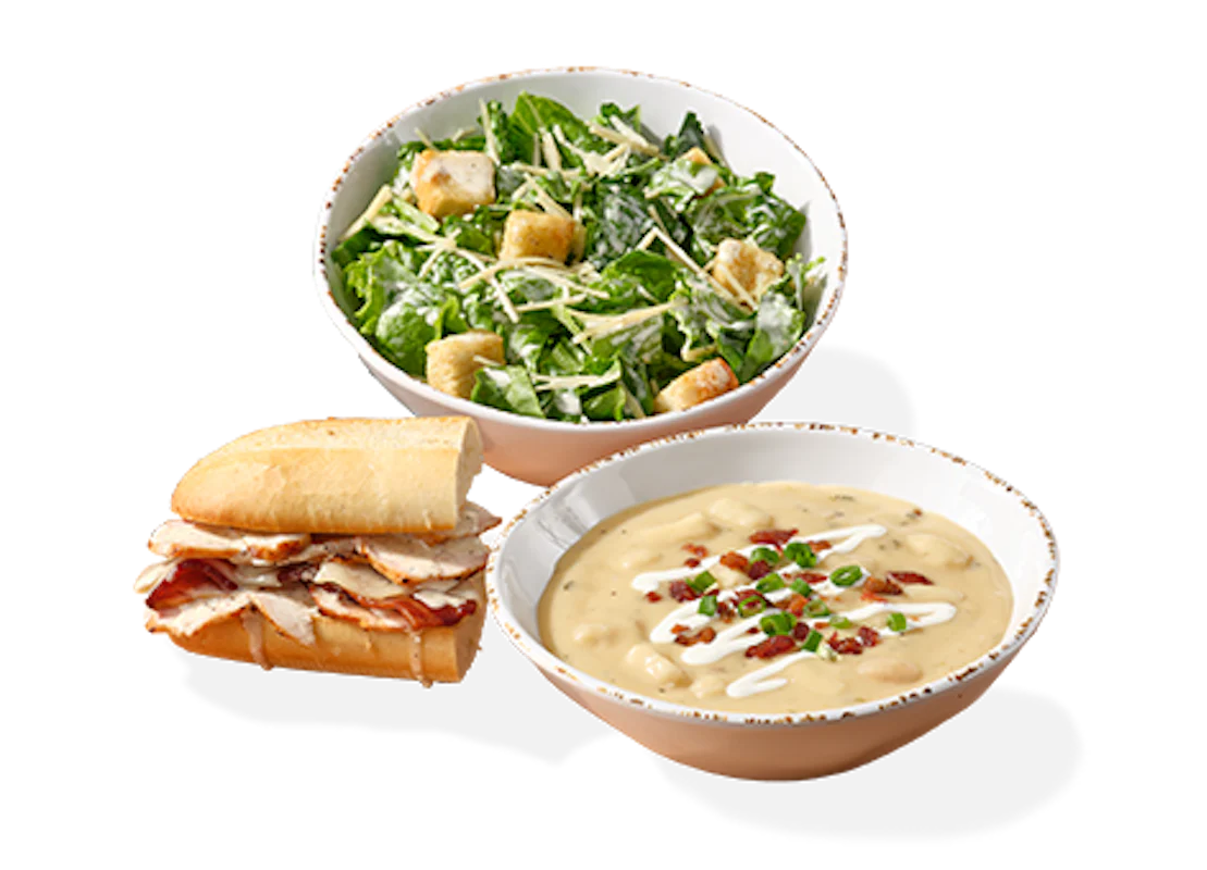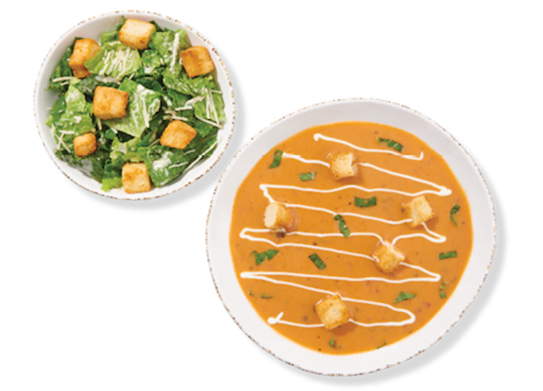 Choose any Bowl of Soup to pair with a Cup of Soup, Bowl of Fruit, Bowl of Pasta Salad, Bowl of Potato Salad, Half Mac & Cheese or a Half Salad.