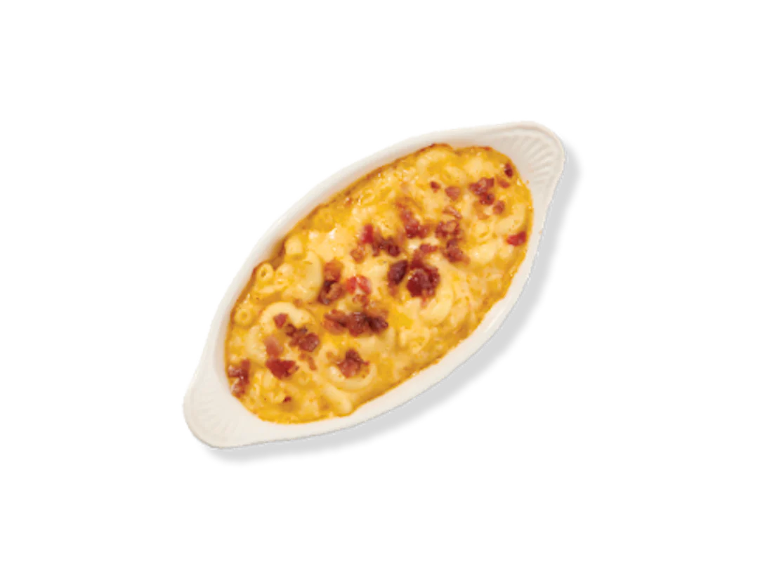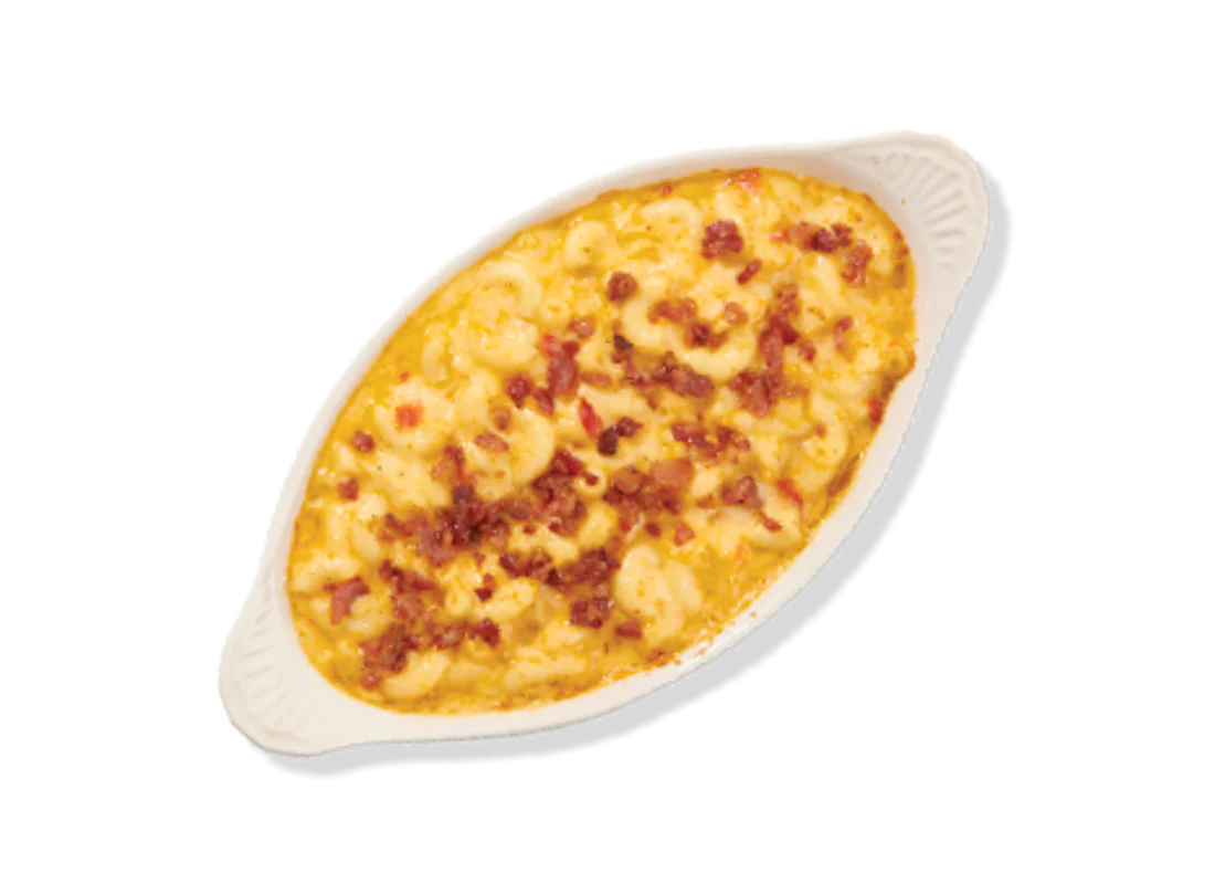 Five Cheese Mac with the extra creamy kick of pimiento cheese. Topped with crumbled bacon. (N)