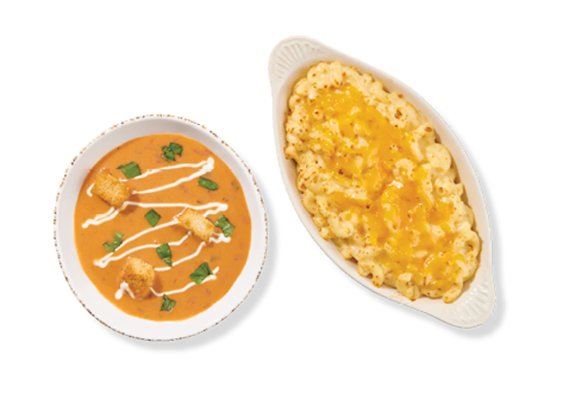 Choose any Entrée Mac & Cheese to pair with a Cup of Soup, Bowl of Fruit, Bowl of Pasta Salad, Bowl of Potato Salad, Half Mac & Cheese or a Half Salad.