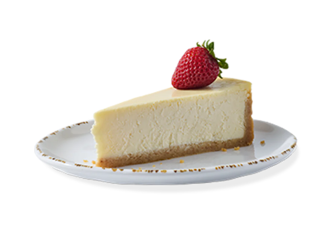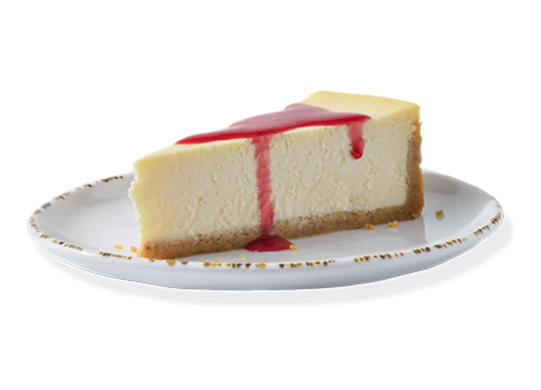 A rich, creamy cheesecake with a buttery graham cracker crust, topped with Strawberry Puree