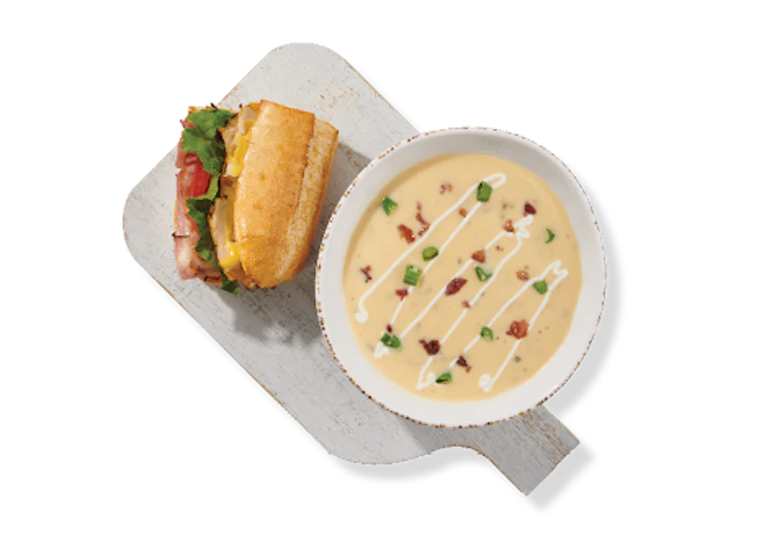Choose any whole sandwich to pair with a Cup of Soup, Bowl of Fruit, Bowl of Pasta Salad, Bowl of Potato Salad, Half Mac & Cheese or a Half Salad. *Upcharge for Premium Sandwiches and Salads