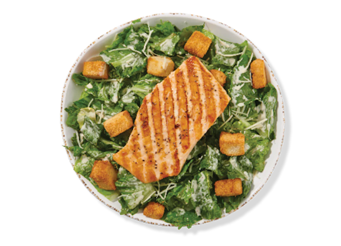 Salmon, Romaine blend, Parmesan and croutons served with Caesar dressing.