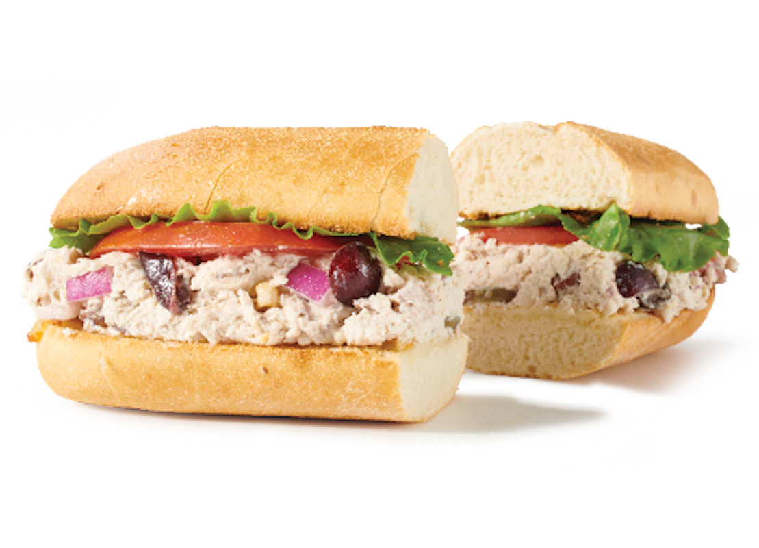 Scratch-made chicken salad made with grapes, pecans and red onions, with lettuce, tomatoes, provolone, mayo on Parisian bread. (N)