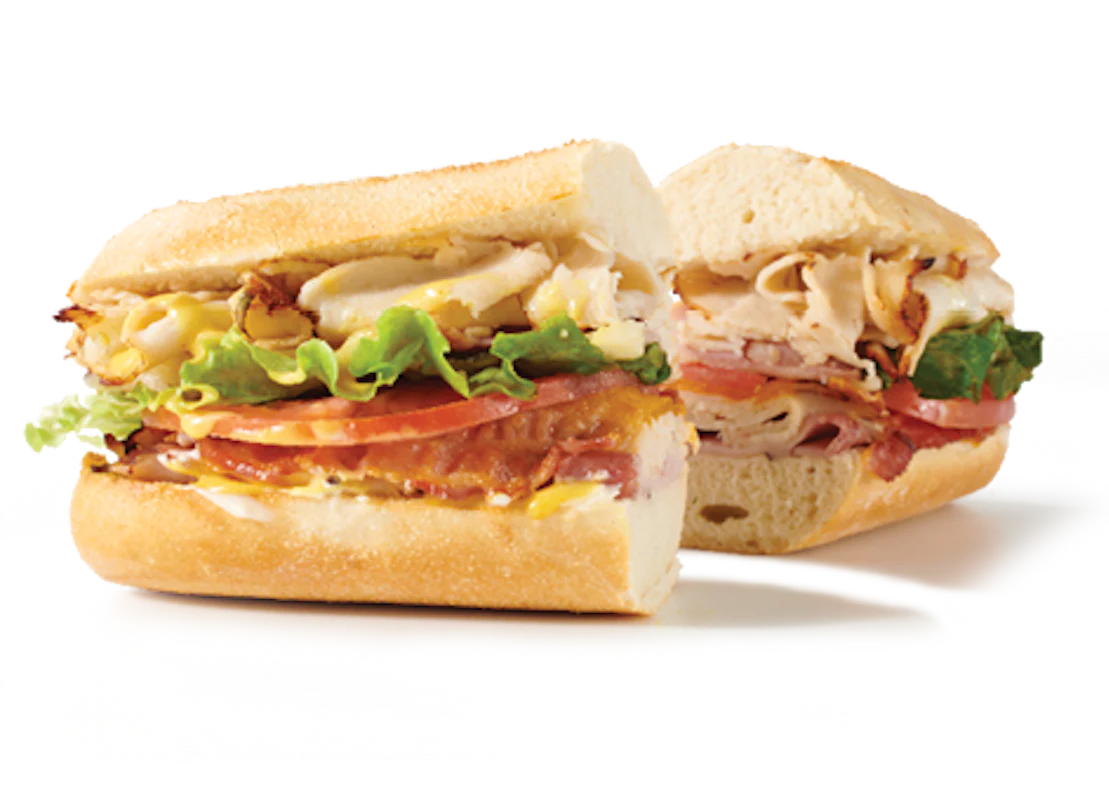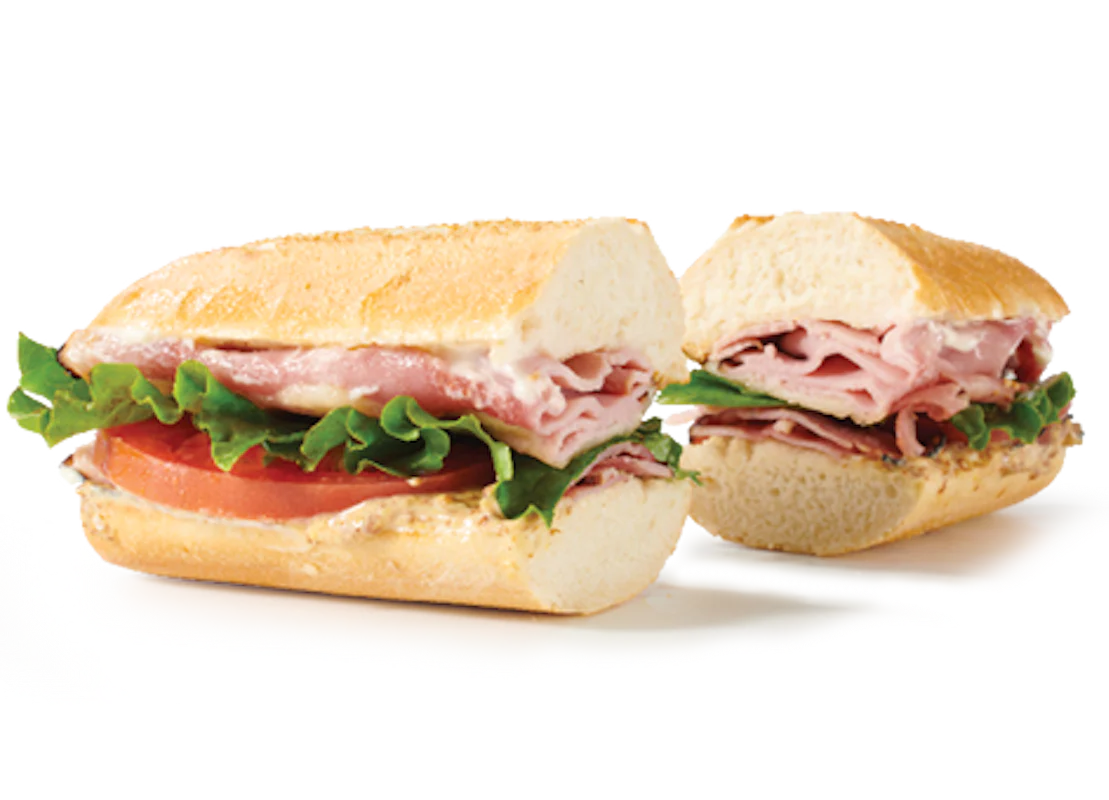 Ham, turkey, bacon, lettuce, tomatoes, Swiss, cheddar, mayo and honey mustard.