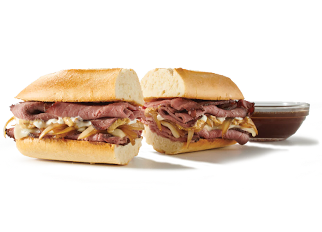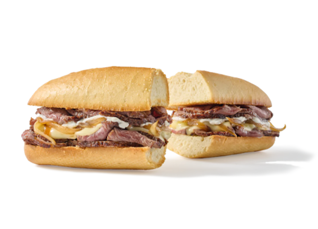 Sliced steak, provolone, caramelized onions and horseradish sauce, served on Parisian bread.