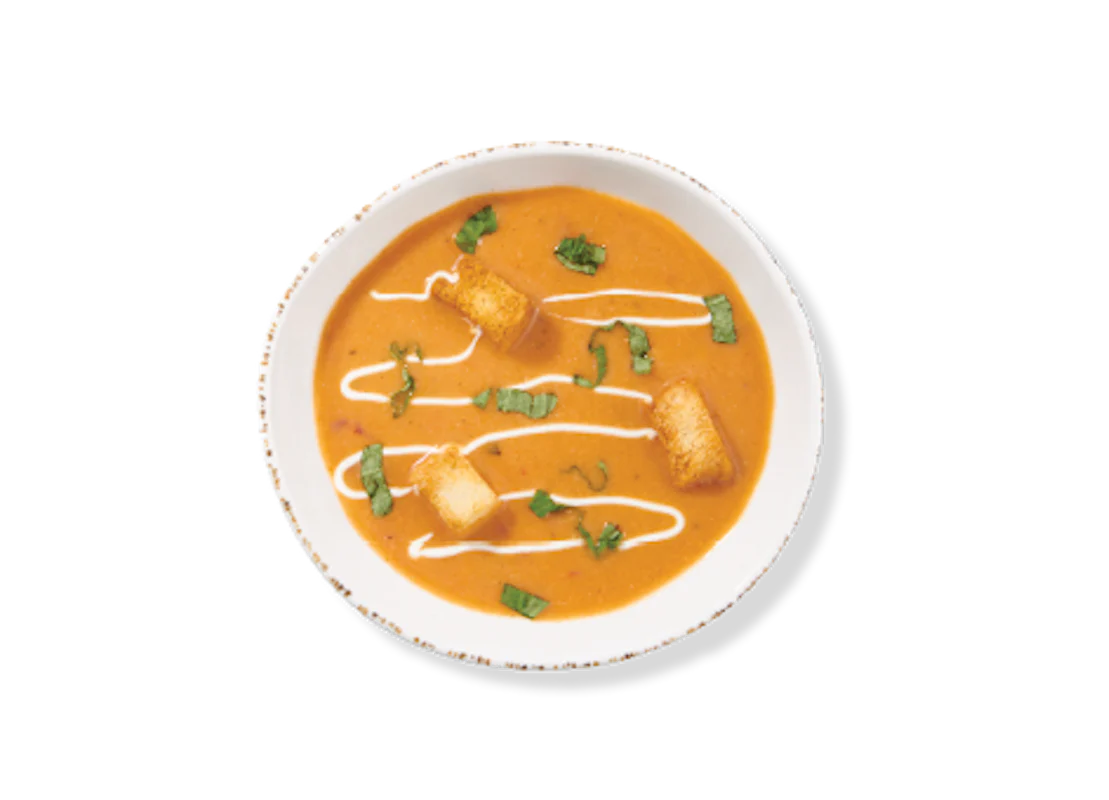 A creamy, slow-simmered soup made with fresh tomatoes and hints of carrot, celery, onion and garlic. (V)