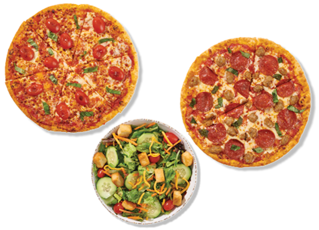 Choose 2 select Pizzas and 1 full classic Salad for your Family Meal Deal