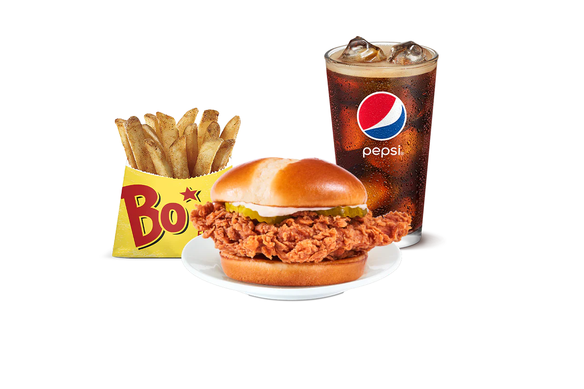 A uniquely seasoned chicken breast filet on a made-from-scratch buttermilk biscuit, served with Bo-Tato Rounds®, coffee or medium drink.