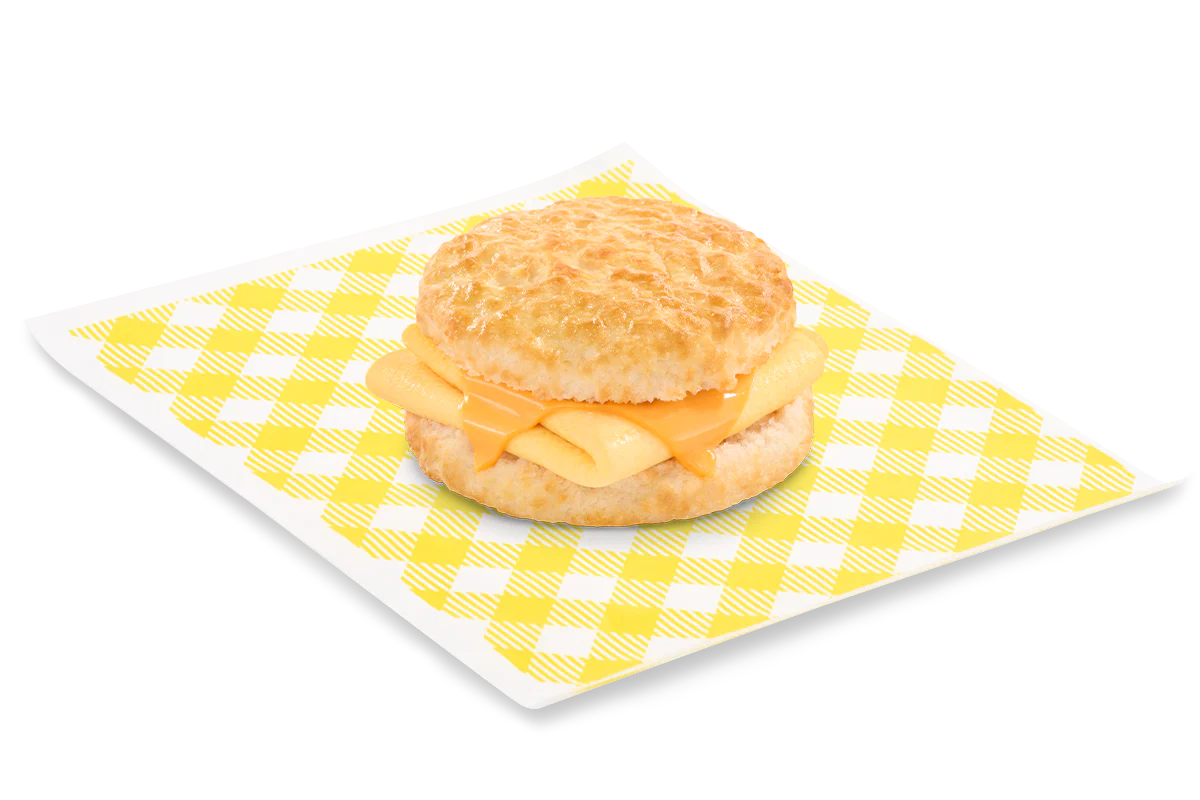 Eggs and American cheese on a made-from-scratch buttermilk biscuit, served with Bo-Tato Rounds®, coffee or medium drink.