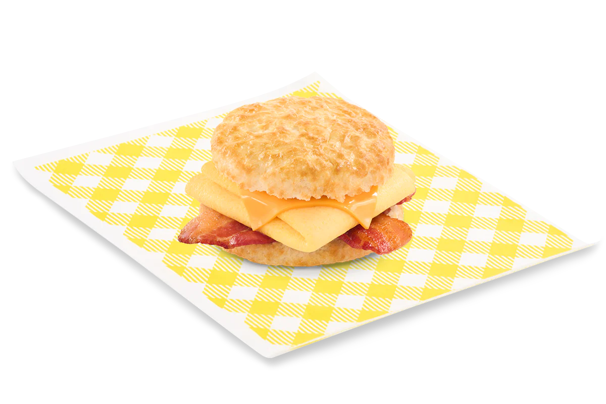 Eggs, hickory smoked bacon and American cheese on a made-from-scratch buttermilk biscuit.