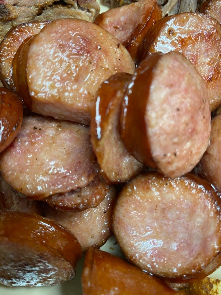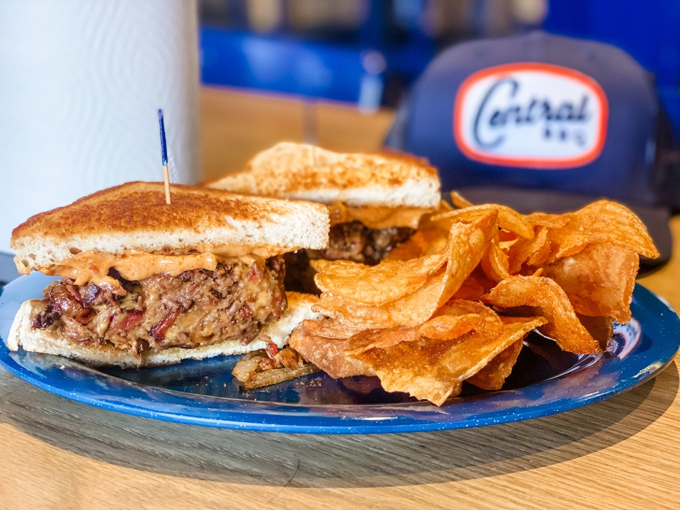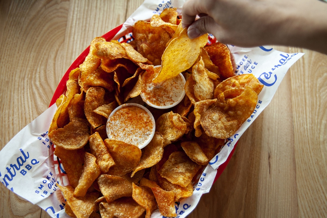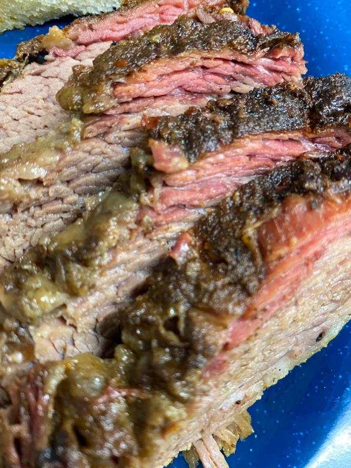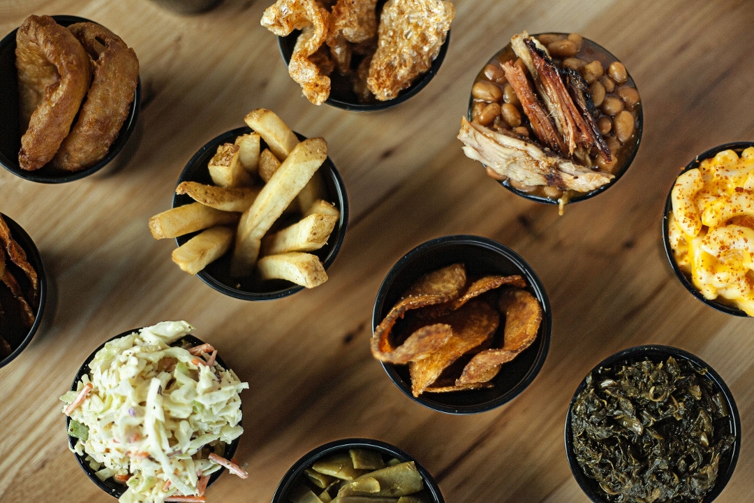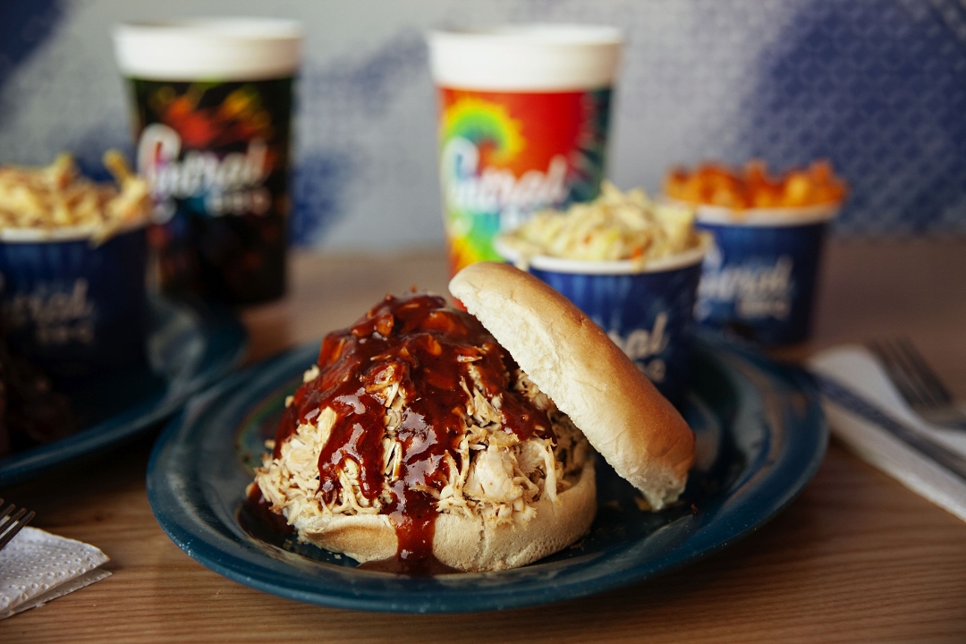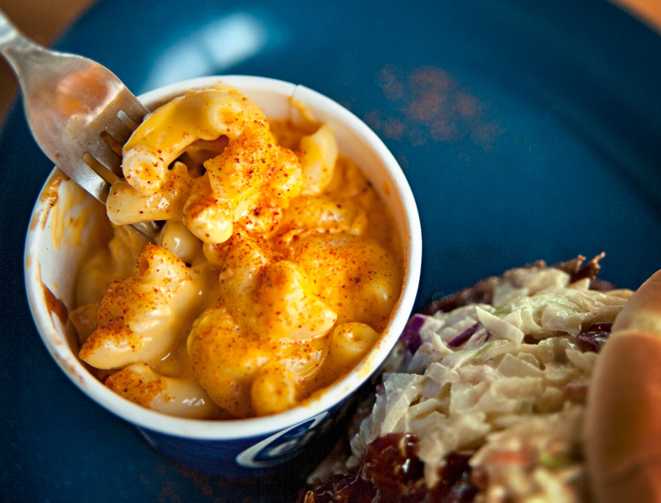 Homeade fresh tortilla chips , our award winning BBQ sauce, Nacho cheese sauce, shredded cheese, jalapeños.Add Smoked Brisket, pork or chicken to level up !!