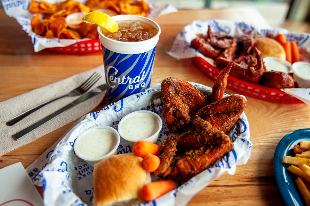 Comes with 15 Smoked Jumbo Wings, Quart each of Baked Beans and Cole Slaw