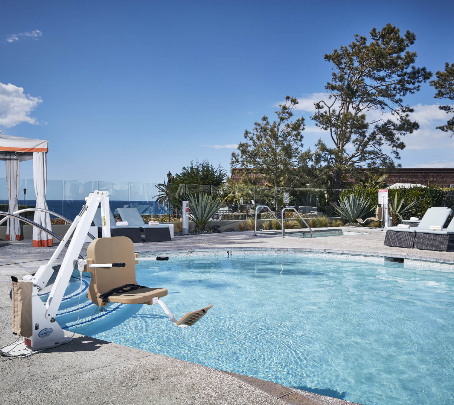 Provide access to your pool, hot tub, and spa with an ADA compliant Pool Chair Lift. Ideal for residences, health and fitness centers, rehabilitation centers, hotels, and other recreational spaces. From new construction projects to existing pools, lifts support elderly aging-in-place and provides an inclusive environment for people with mobility limitations.