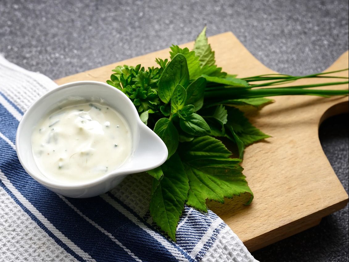 A chopped black bean burger mixed with Mitchell's Sergio Salsa and scrambled eggs, layered with sour cream, and finished with our house-made Sriracha ranch sauce.