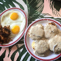 garlic fried rice, beef patty, sunny-side egg, mushroom gravy