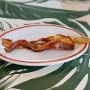 Two strips of maple smoked bacon