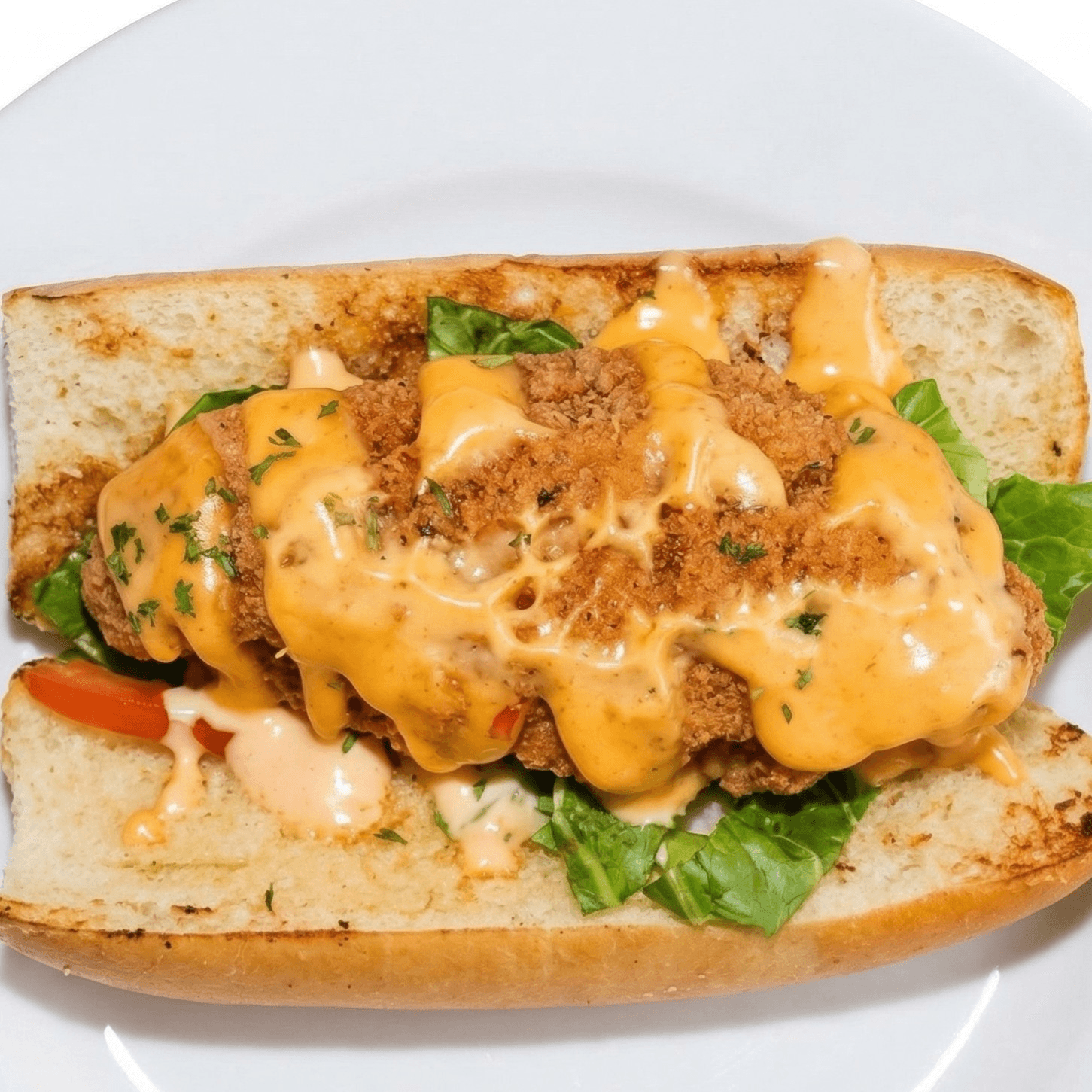 Cajun dusted and fried to perfection, served on gambino's famous French bread with garlic mayo, shredded lettuce, and tomato. Finished with a drizzle of our shack sauce. Add catfish, shrimp, or oyster for an additional price.