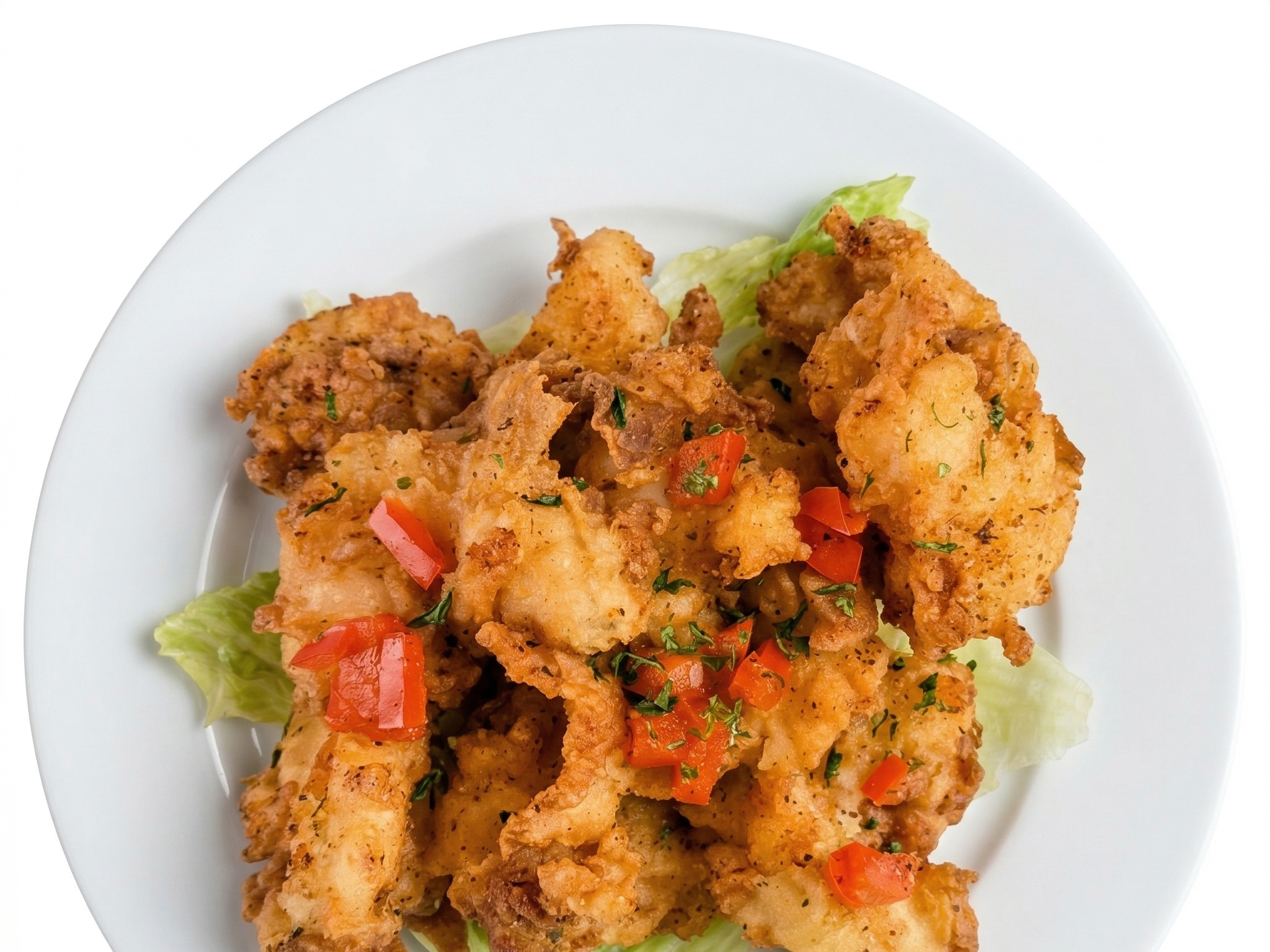 Mississippi farm-raised catfish, served with two hushpuppies, jalapeños coleslaw, and French fries.
