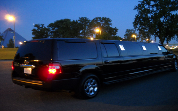 The Posh BlackHawk 12-14 Pass SUV Stretch Limousine. Black