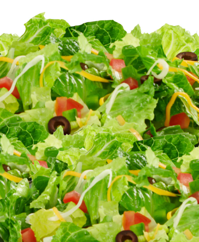 Green Peppers, Roma Tomatoes, Black Olives, Whole-Milk Mozzarella, Cheddar Cheese, and Romaine Lettuce